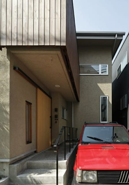 親子二世帯が共有している外玄関。チャイムもそれぞれに付け、互いが気を遣わずに生活できるようにしている