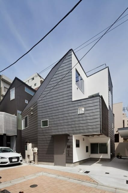 K邸外観。目隠しとなる壁の向こうに坪庭がある。1階には覗き見を防ぐため、ルーバーを設置している
