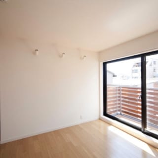 木のナチュラルさを引き立て黒子の役割を果たす外壁は、木との相性も抜群。ガルバリウムというコストを抑えた素材だが、サビにも強くメンテナンスが楽なのがメリット。黒色のおかげで、バルコニーがより立体的に浮きだして見える
