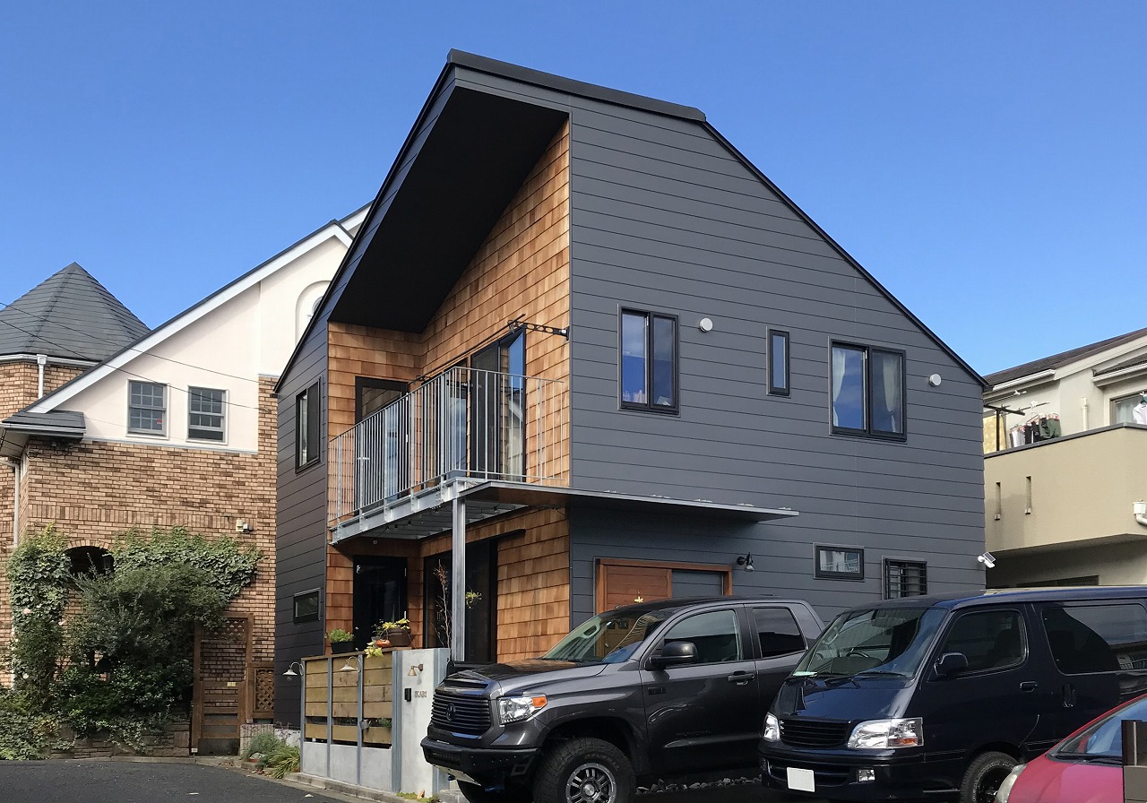東京・練馬の坂の上の住宅地に立つこの家は、店舗などのデザイン・施工を数多く手がける『株式会社玄翁(げんのう)』の代表であり、インテリアデザイナーとして活躍するIさまの自邸だ。