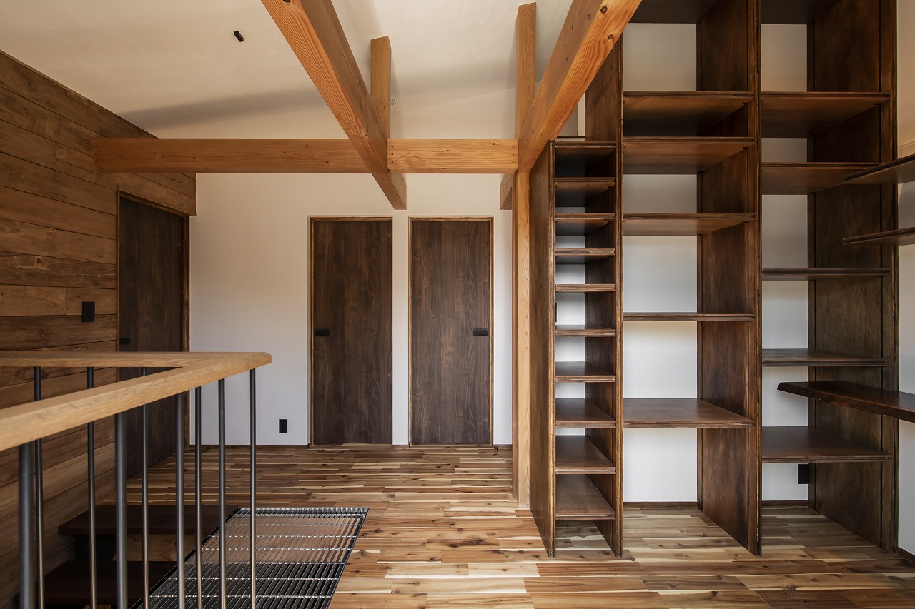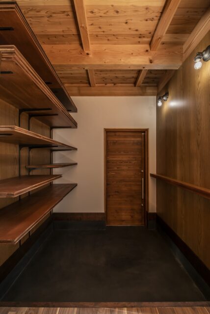 今回Iさまは、壁や床、造作家具といった内装の仕上げ決定と施工、外装の仕上げ決定は自社で行いたいと考えており、菅家さんは外形および内部の空間構成の設計を引き受けた。そしてIさまは、表情豊かなアイテムを厳選し、菅家さんが設計した建築をヴィンテージ感のある洗練された空間に仕上げている。