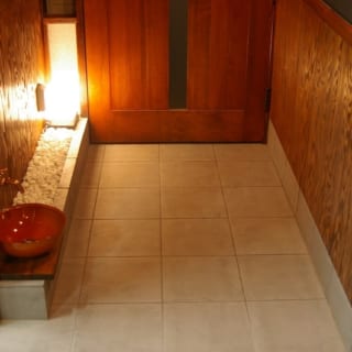 内玄関/通りに面した外玄関を開けると細長いアプローチが。その奥には内玄関があり、ここが2階、3階の自宅へのエントランスとなる