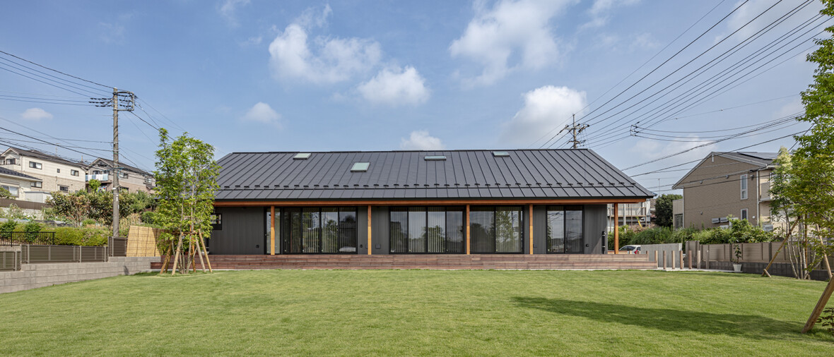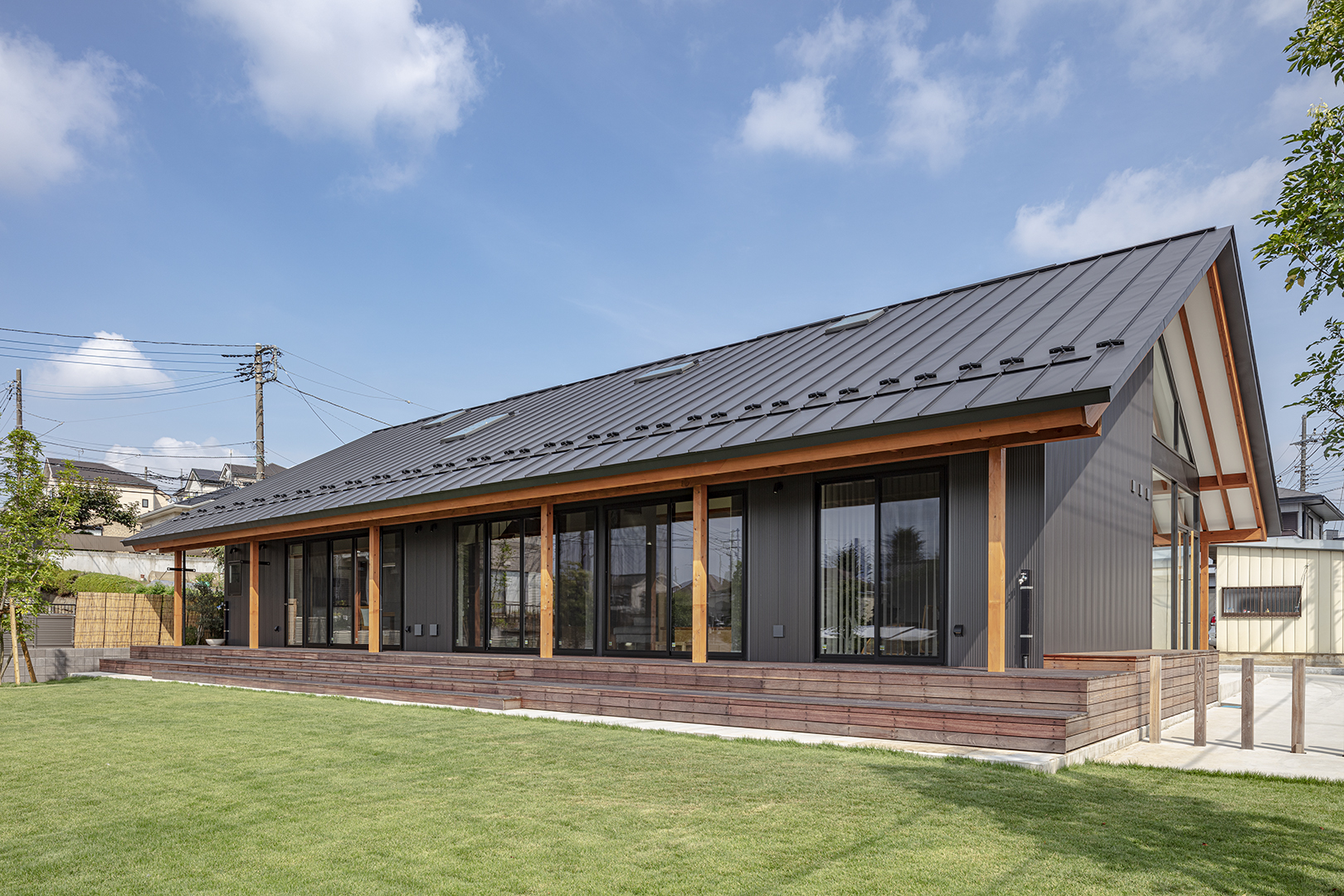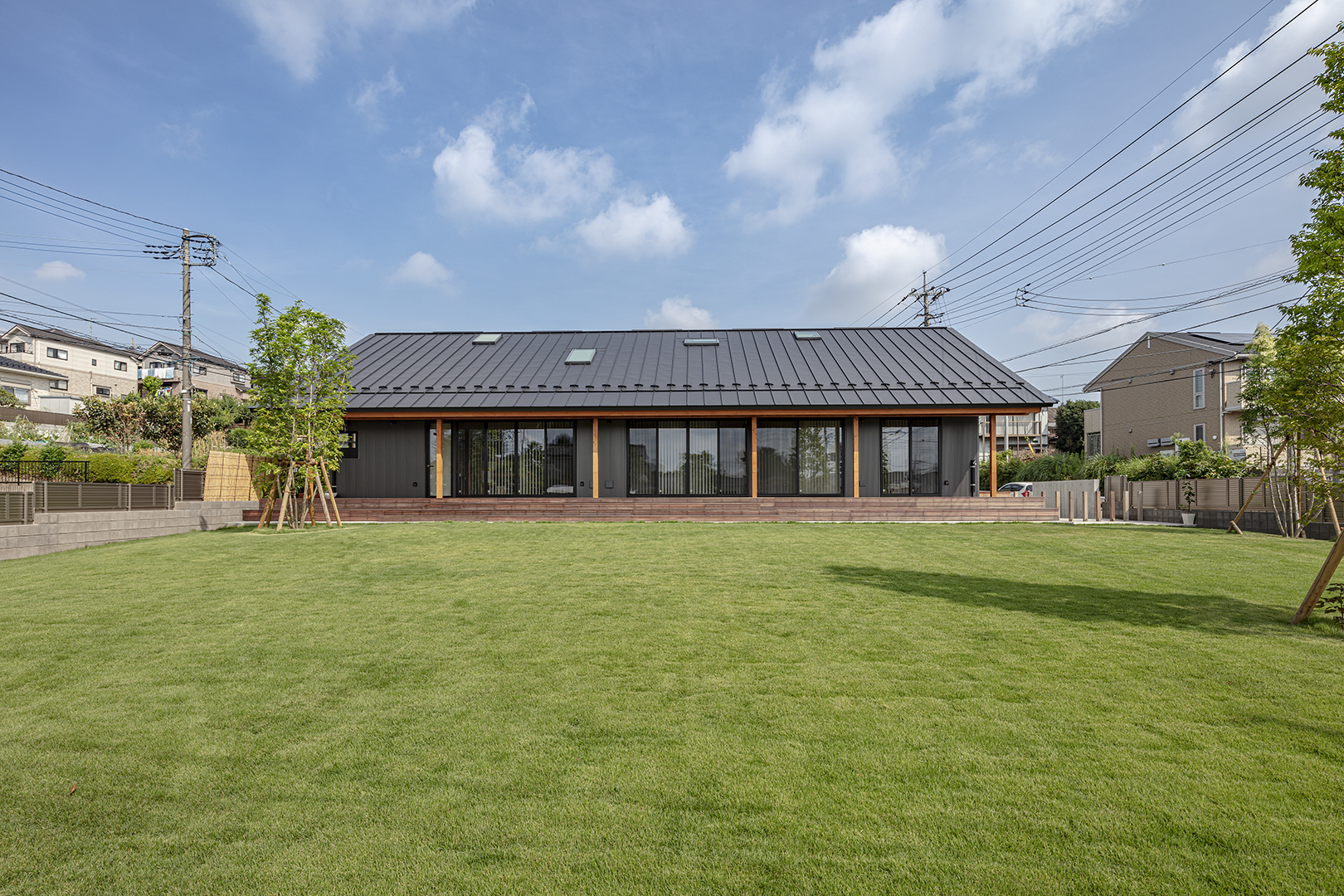 施主さまは生花の農家だったため、南の庭の造成は自ら指揮を執ってくださったとのこと。北の外部空間は親族の集まりなどで使うパブリック空間であるのに対し、こちらの南側はウッドデッキで緑を眺めたり、お孫さんが遊んだりするプライベート空間として活躍中