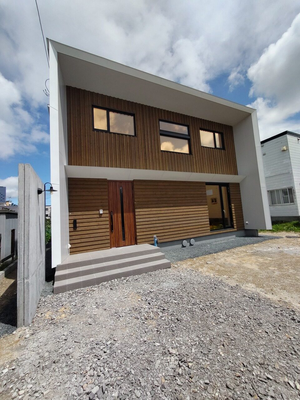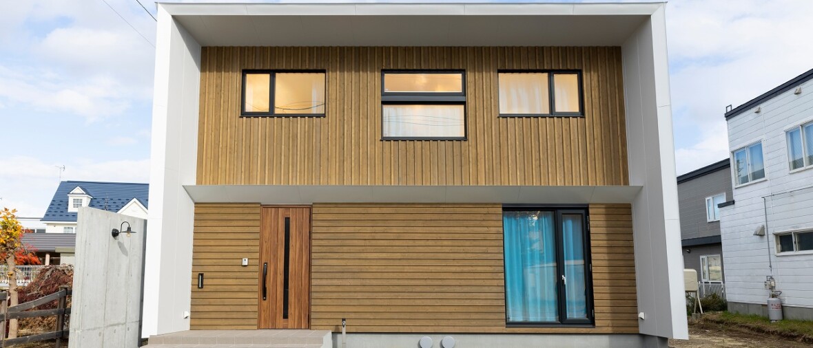 冬場はホワイトアウトも起こるという北海道石狩市。環境に負けない家にすべく計画したのは、家のアウトラインを深い庇で囲うプランだ。設計を担当した建築家の一原さんは、お施主さま好みのデザインと、機能性を両立。室内はパッシブ効果を最大に引き出す計画のおかげで、一年通して快適に過ごせるという
