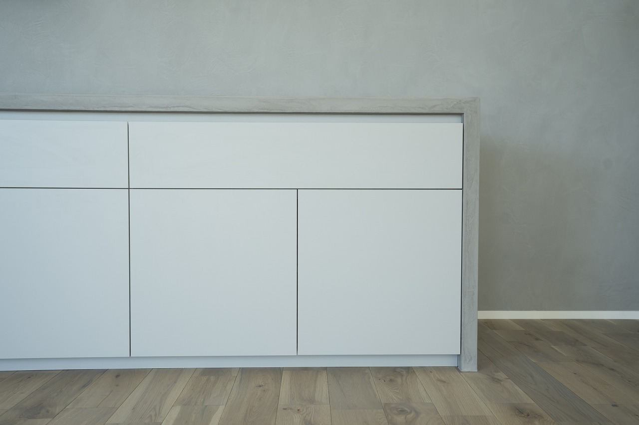 物を置かずに、シンプルな暮らしがしたいとお望みだったお施主さま。依頼を受けた建築家の武本さんは、いくらでもシンプルに整えることはできるが、そこにあえて足し算することで個性が感じられる家にしたいと考えた。手仕事ならではの質感や素材感を絶妙なバランスで引き立たせたこの家には、唯一無二の魅力がある。