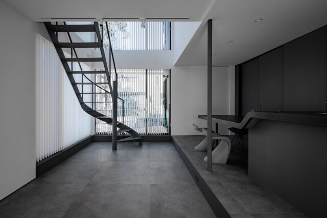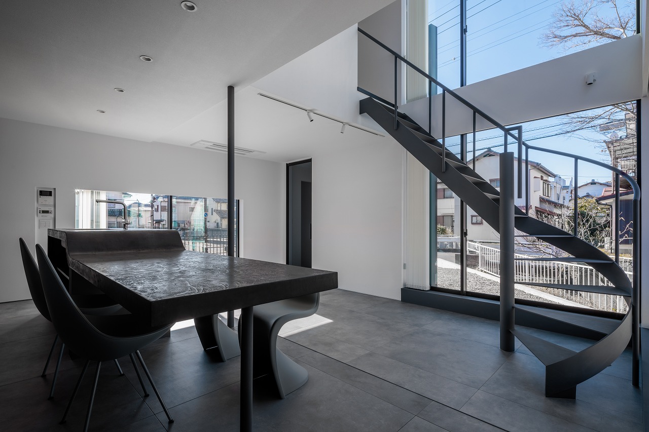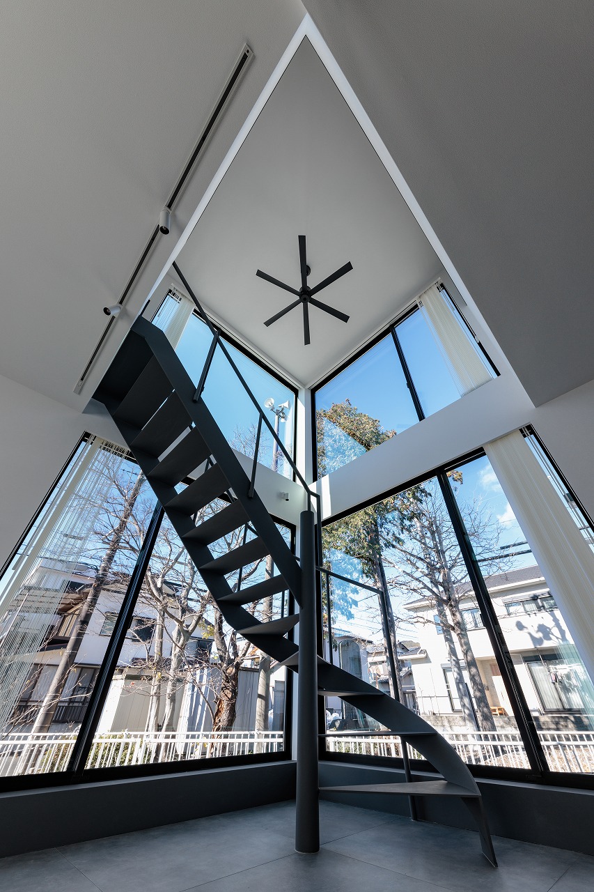 ひとりで暮らす自宅を新築するため、ほぼ三角形の敷地を購入されたお施主さま。建築家の戸川さんは、三角形の敷地に小さな正方形を配置し、余白も活用しながらゆとりある家をつくりあげた。ご友人たちとパーティーをしたり、ひとり時間を楽しんだり。どんなシーンにもフィットする家はどのように完成したのだろうか。