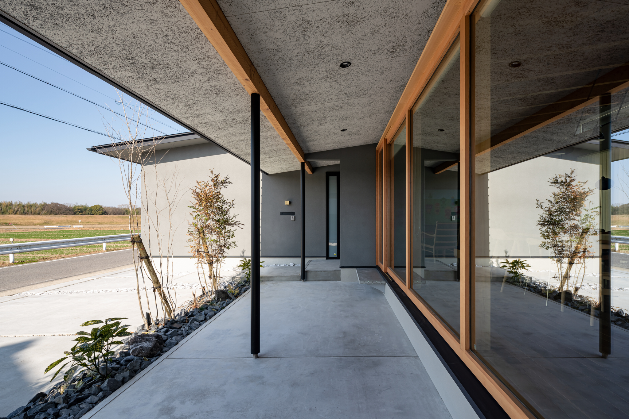 広大な田園が目の前に広がる愛知県岡崎市の集落に、ある邸宅が誕生した。この作品が持つ主な特徴は2点。眼前のすばらしい眺望を活かし、土地を有効に使い切っていること。そして近隣と調和し、共存できるプランとしたことだ。派手なデザインではないが、様々な視点で深く考え尽くされた、この作品をご紹介しよう。