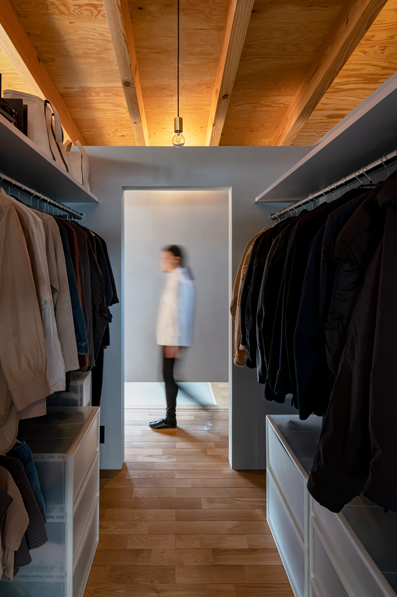 両サイドから入れる、ウォークインクローゼット。LDK、玄関、寝室、浴室からスムーズにアクセスできる動線だ