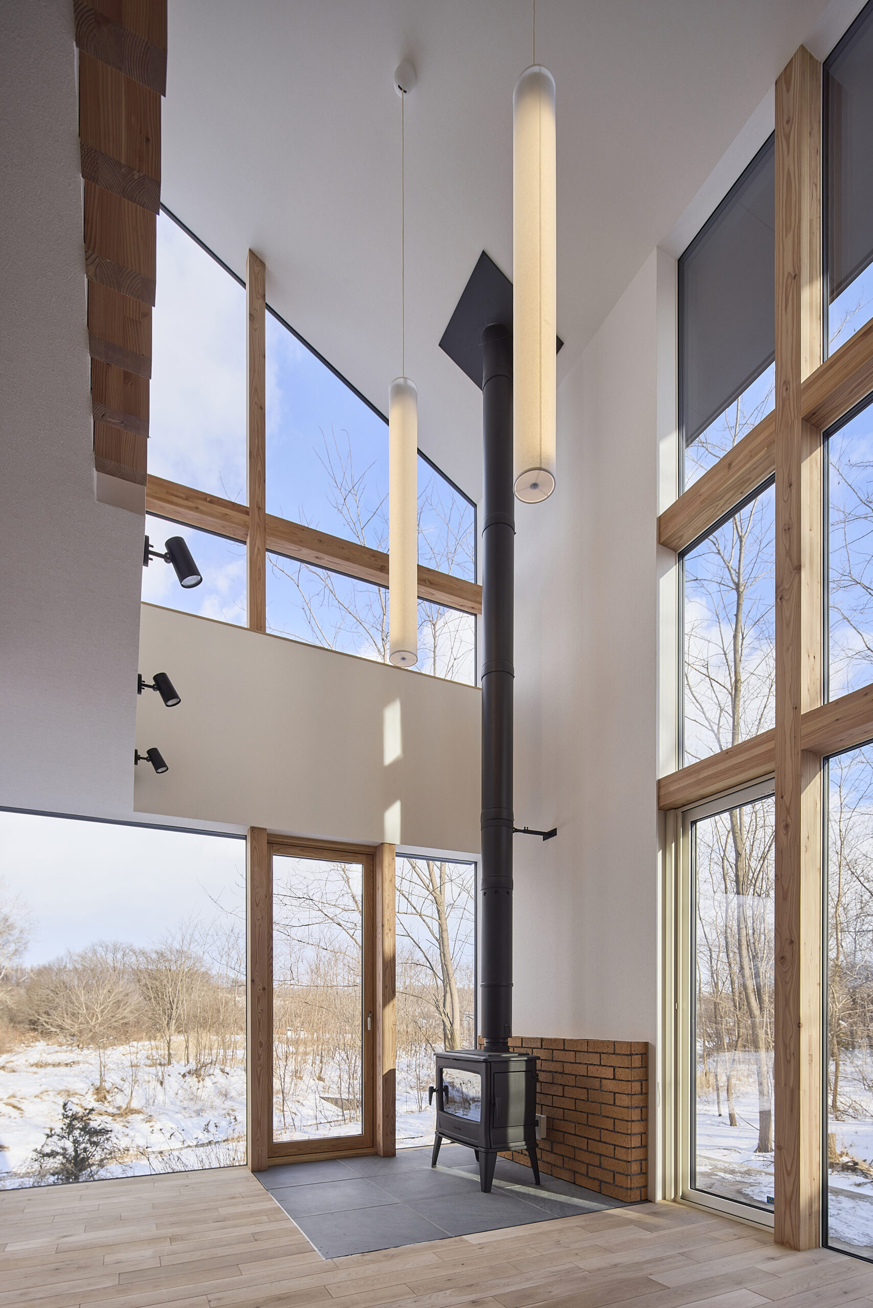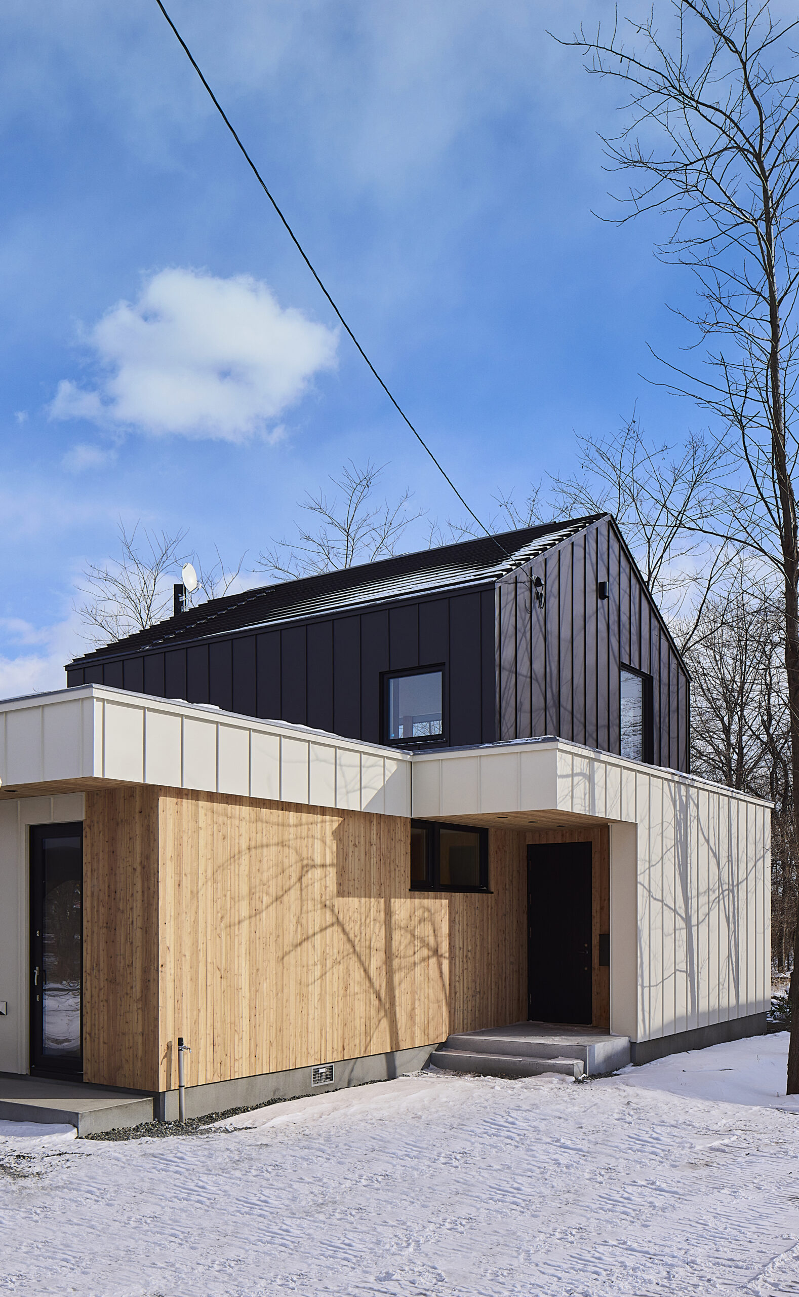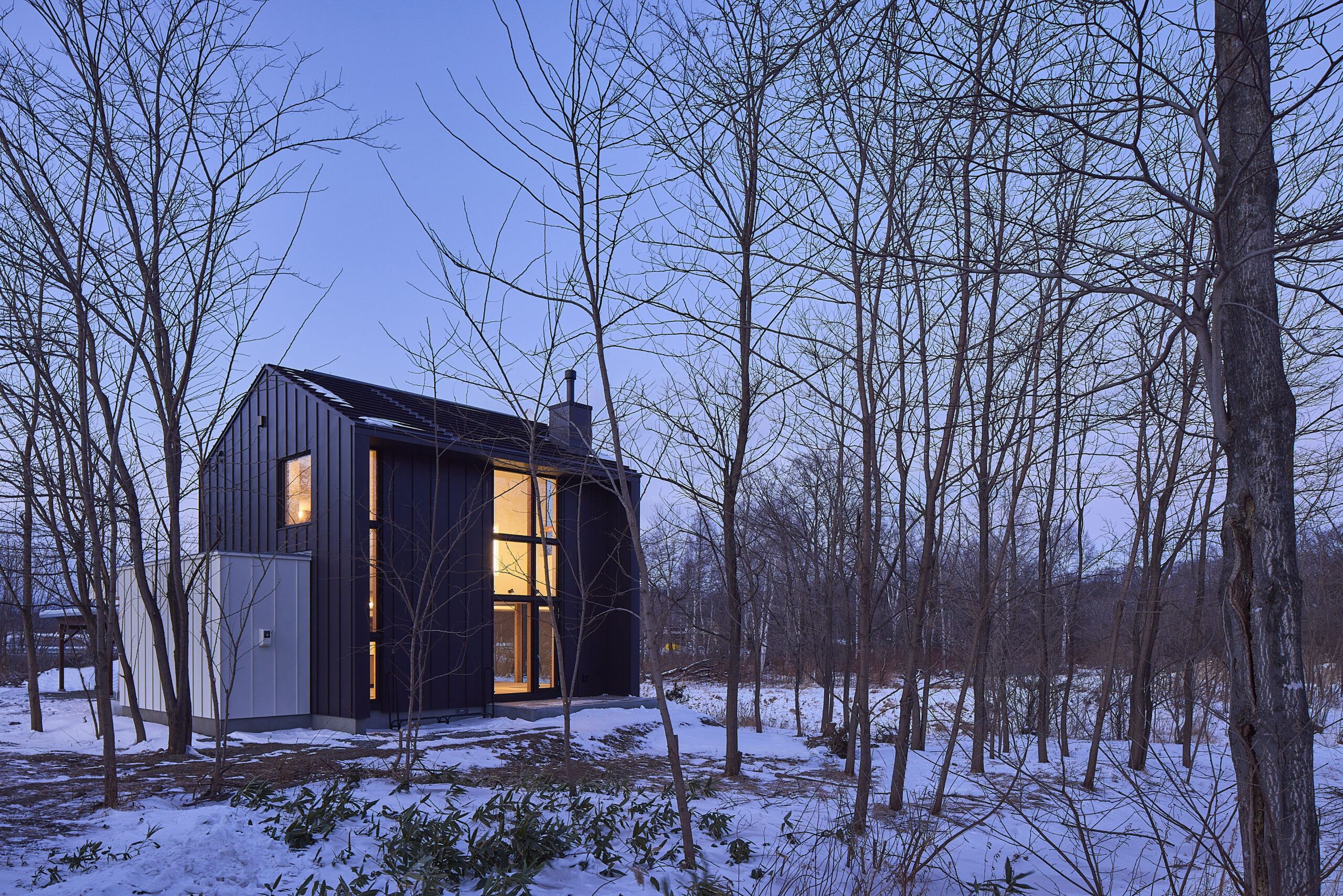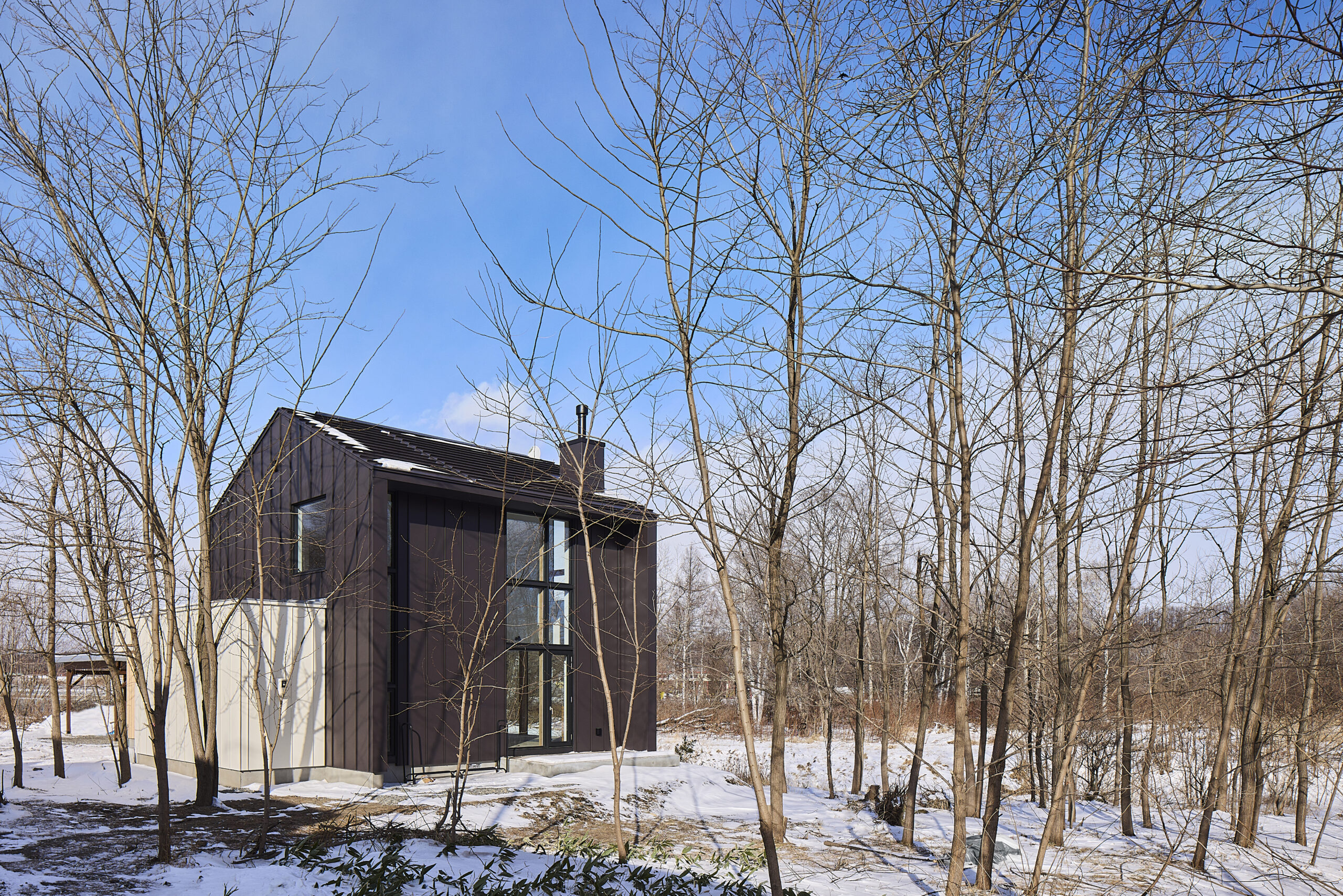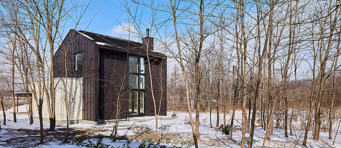 外観は木立の中にそっとたたずむよう、コロンとした切妻形状に。自然の中で建築が「異物化」しないようボリュームを程よく抑えながら、周囲に溶け込むベストなバランスを追求した