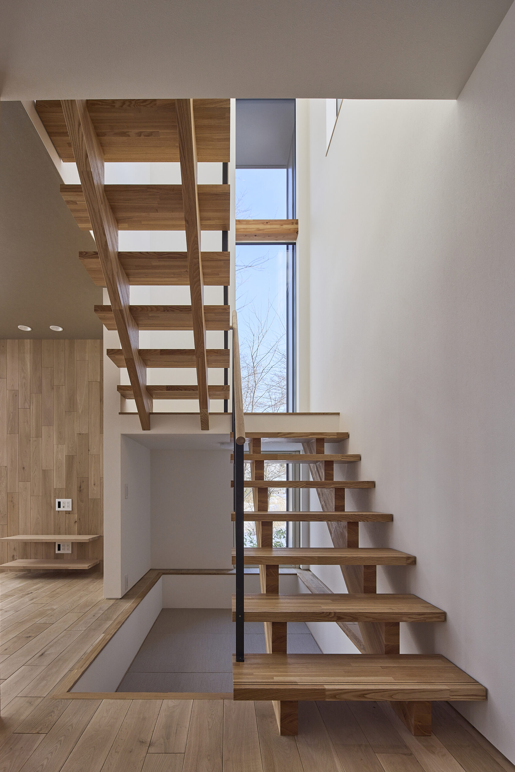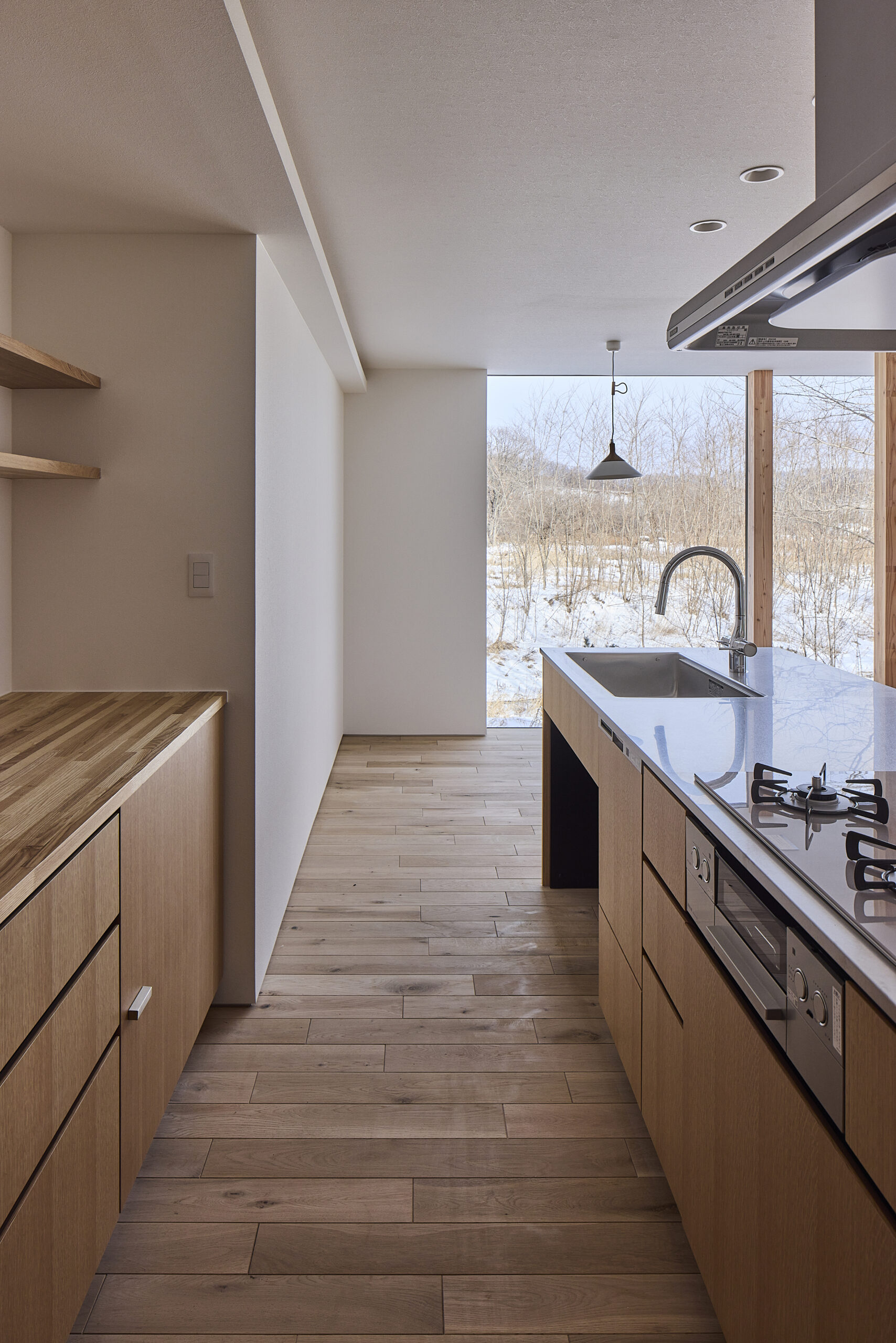 自然に対して開き、住宅地に向けて閉じる。このメリハリをしっかりとつけることにより、プライバシーを保ちながら「自然に囲まれた暮らし」に集中できる住環境を整えた