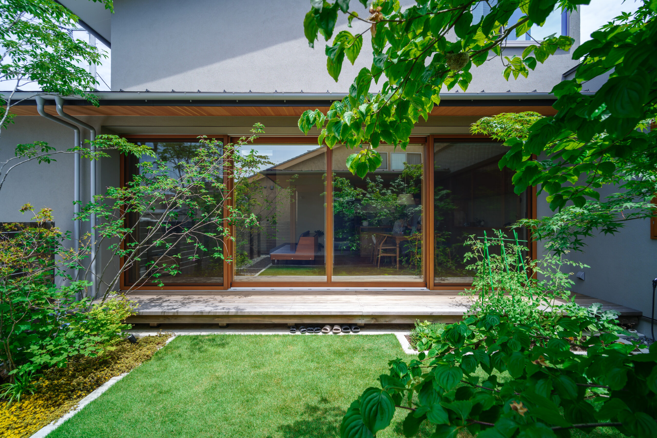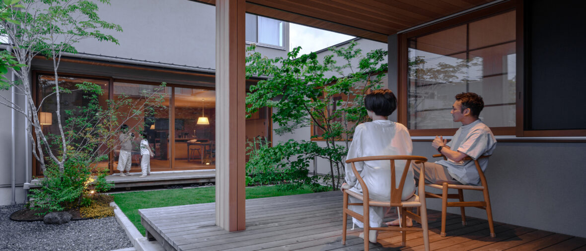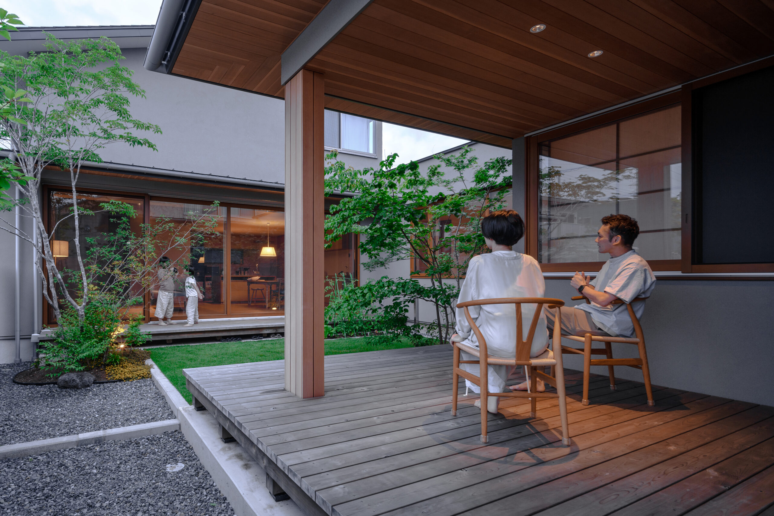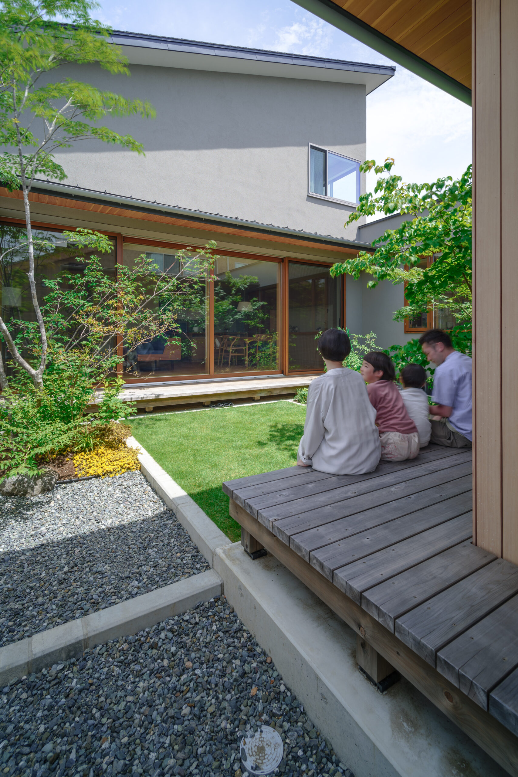 インナーテラスでのんびり。外にもこうした居場所があると、中庭の活躍シーンがいっそう増える