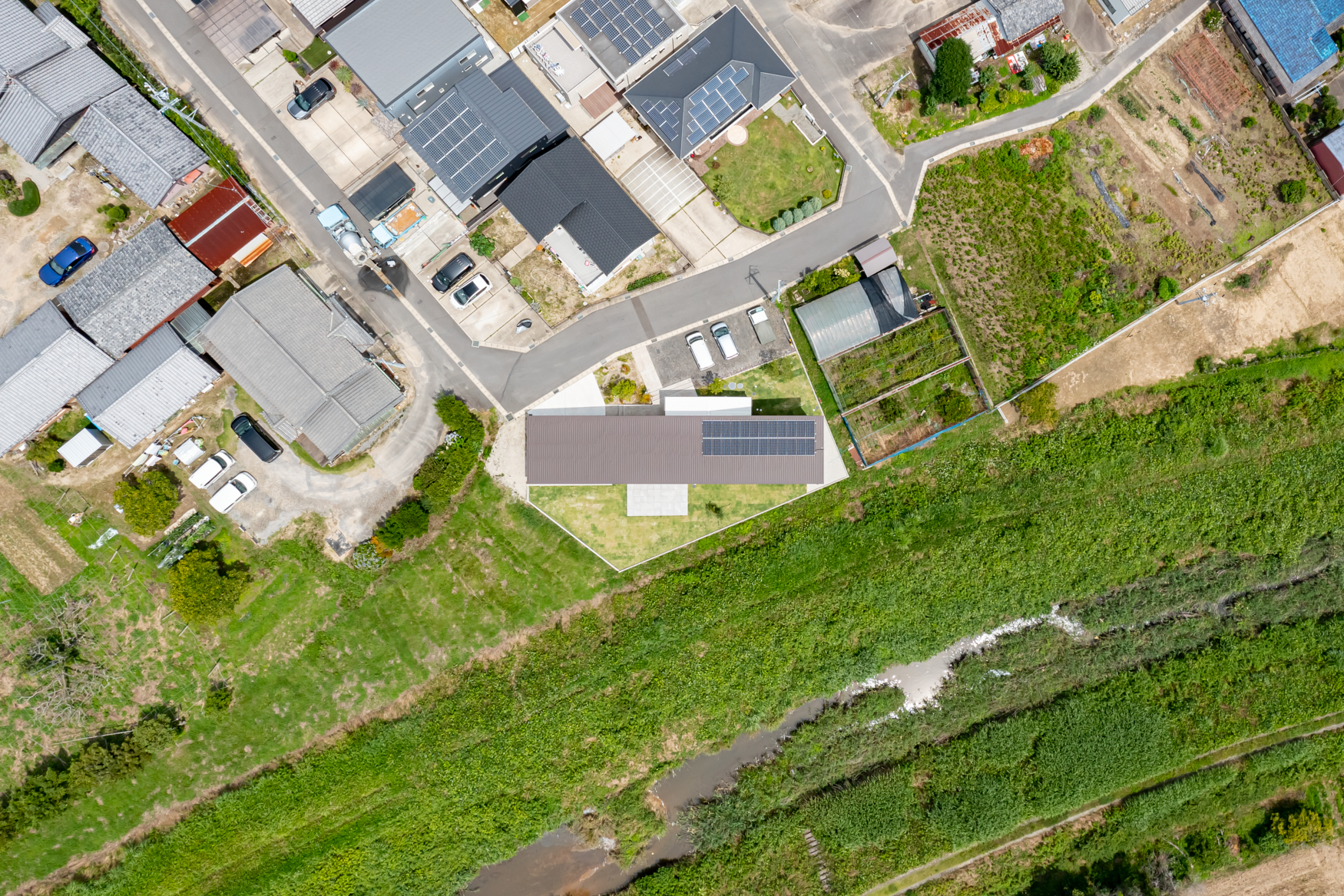愛知県西尾市に、独創的な邸宅が誕生した。敷地は遠方に茶臼山を望み、河川の堤防に面する、自然豊かな環境に恵まれた立地だ。古い集落の入口に位置し、近隣住民の多くがこの景色や環境に慣れ親しんできた。周辺環境を壊さず、近隣に溶け込みながらも、モダンで熱効率に優れた作品のヒミツをご紹介しよう。