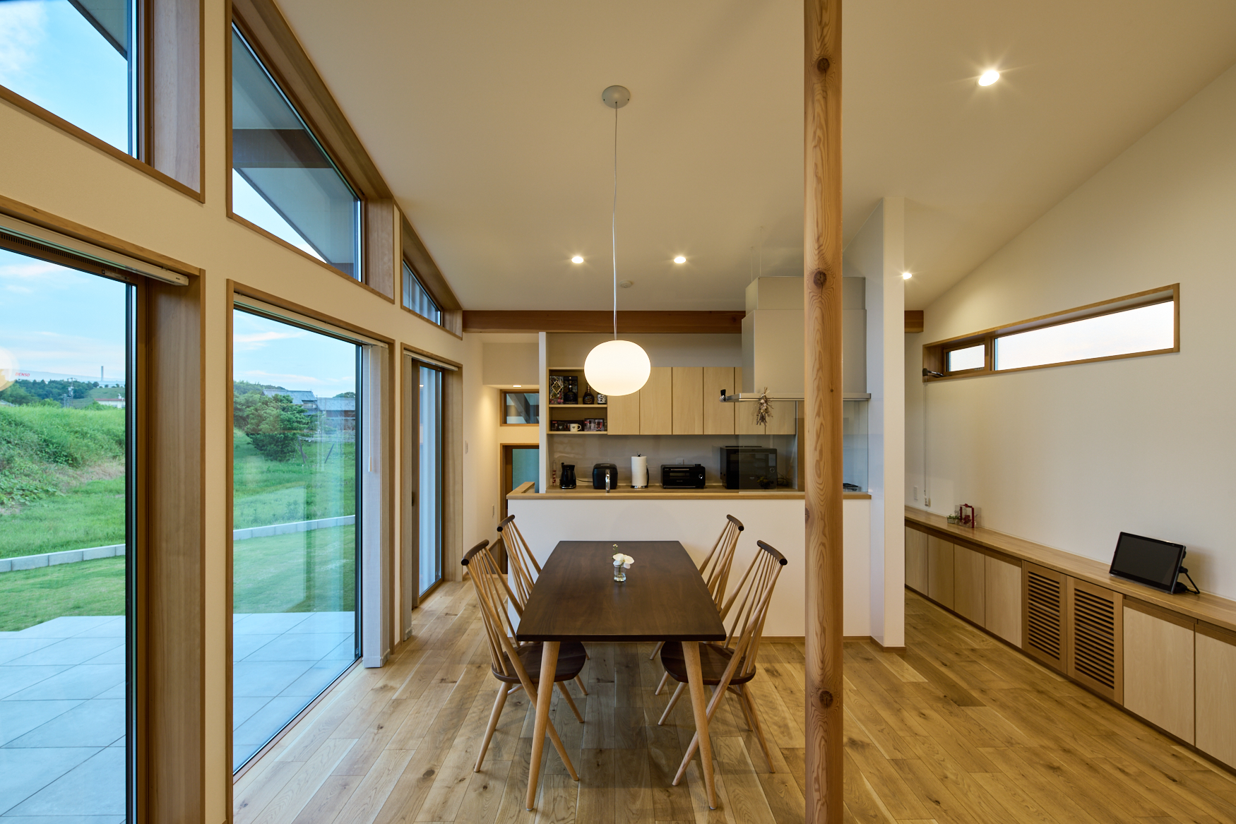 いかにお施主様が満足しているのかがよく分かる。お施主様は芝生の庭での時間を楽しみ、奥様は窓から見える茶臼山を眺めてくつろいでいるという。