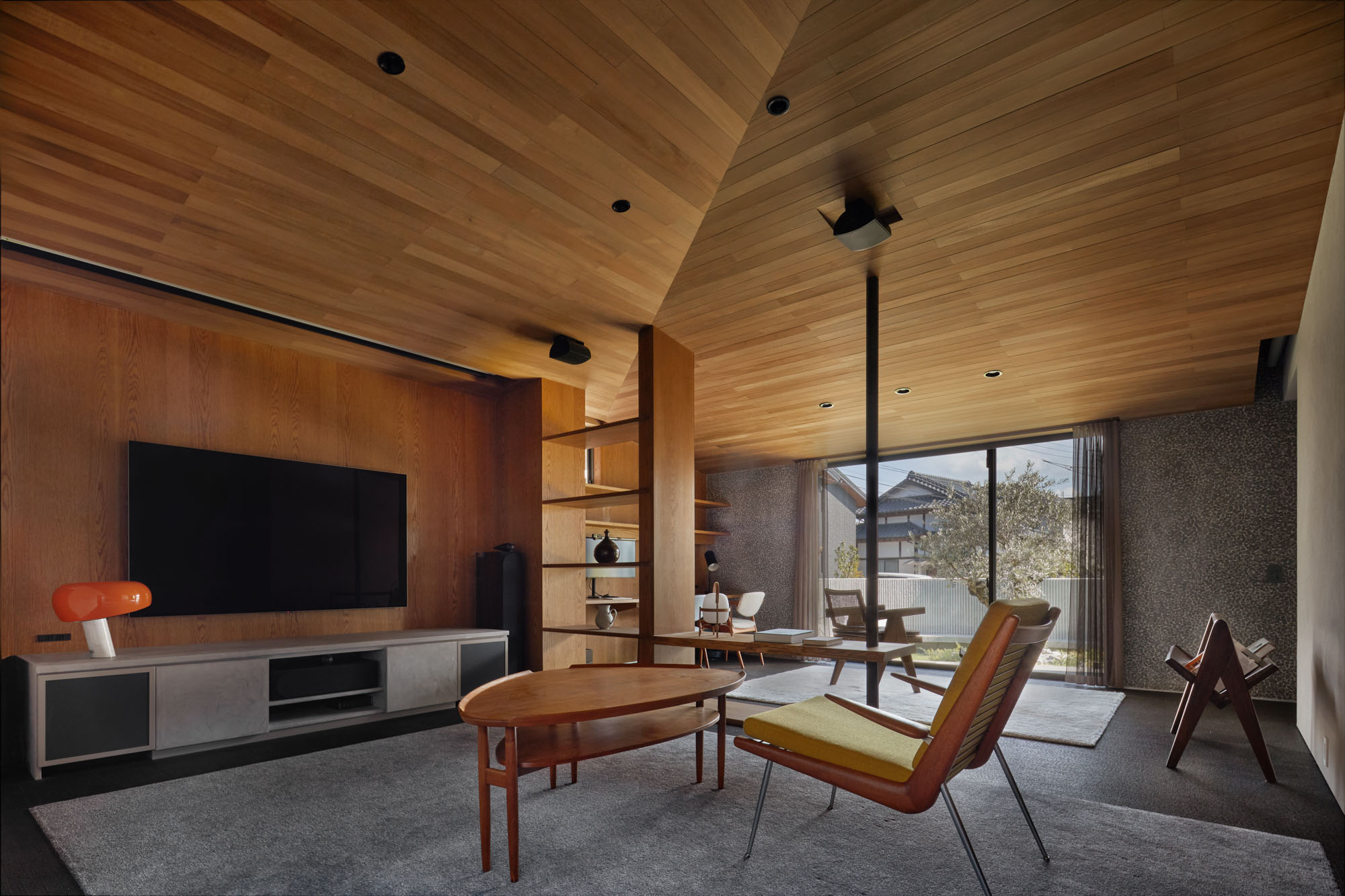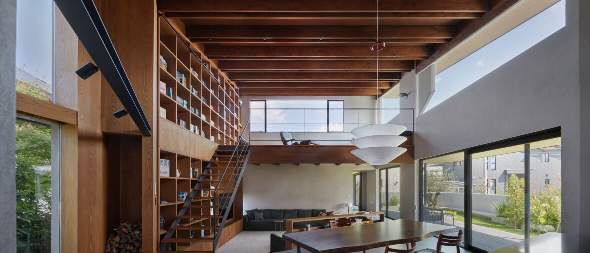 お施主さまが望まれていたのは休日に家から出ずとも退屈しない、大空間にさまざまな居場所がある家。依頼を受けた建築家の西岡さんは、ご要望を叶えながら更なる心地よさや使いやすさを得られる家にしようと考えた。完成したのは敷地形状を見極め、数字では表せない開放感や居心地を享受できる、高級感に満ちた家だ。