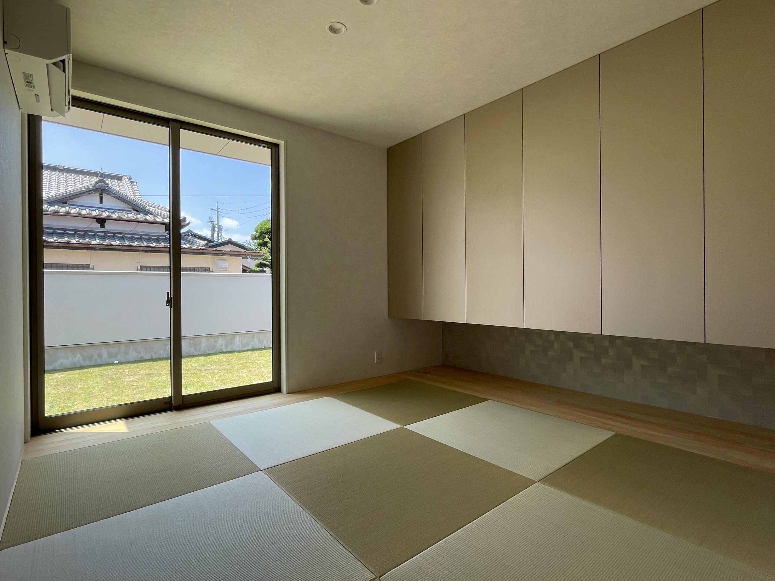 玄関脇にある客間は中庭に面した和室。琉球畳の目を市松模様に。