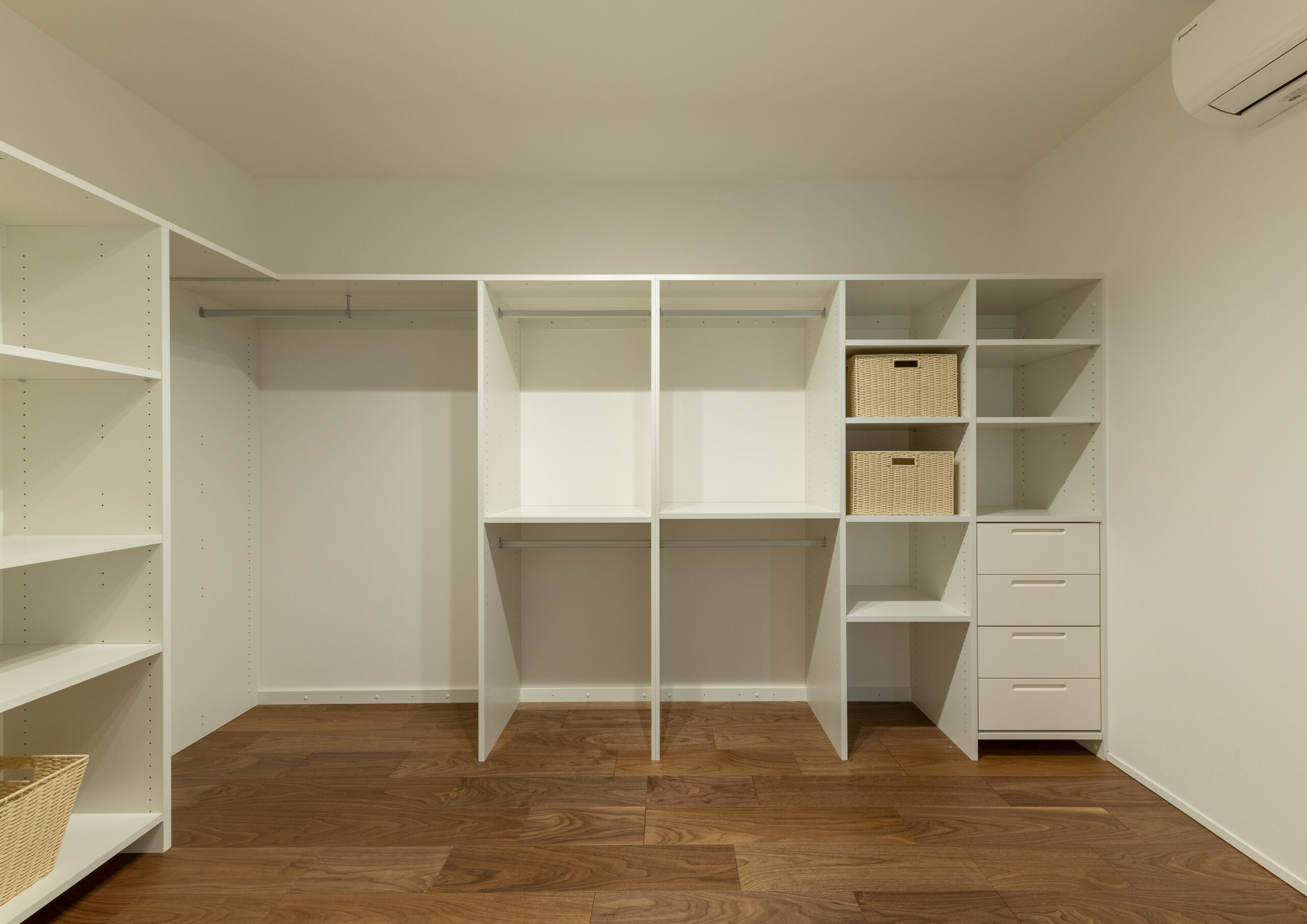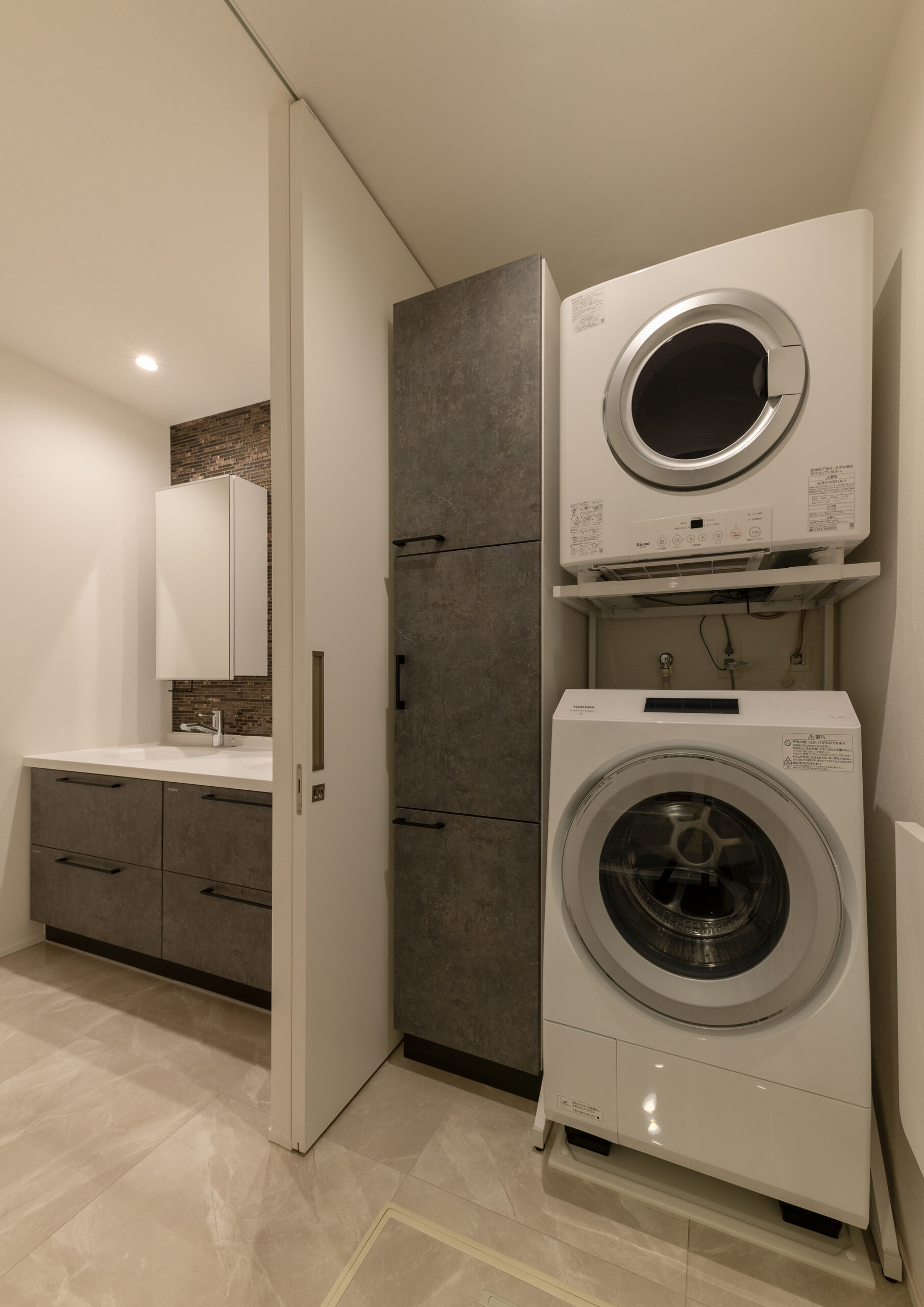 洗面の奥に配置された脱衣室。この奥にある浴室とこの場所はプライベートスペースとなる
