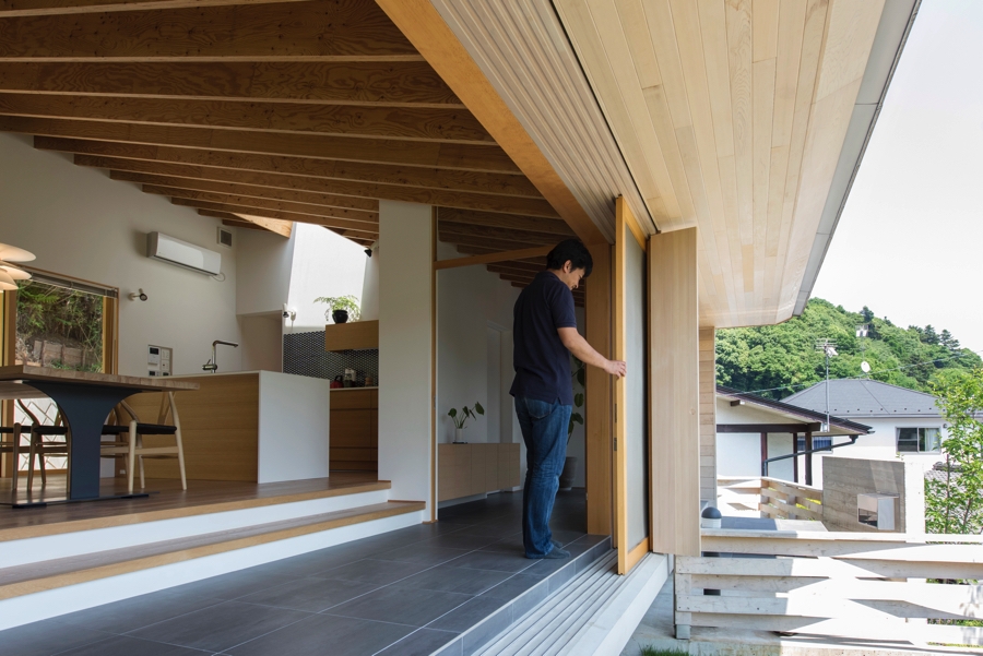 窓いっぱいに広がる高尾の自然の景色、家のなかを通りぬける気持ちのよい風。存分に自然を味わえる家は、建築家の望月さんが家族と暮らすならと考えて設計した理想の家でした。