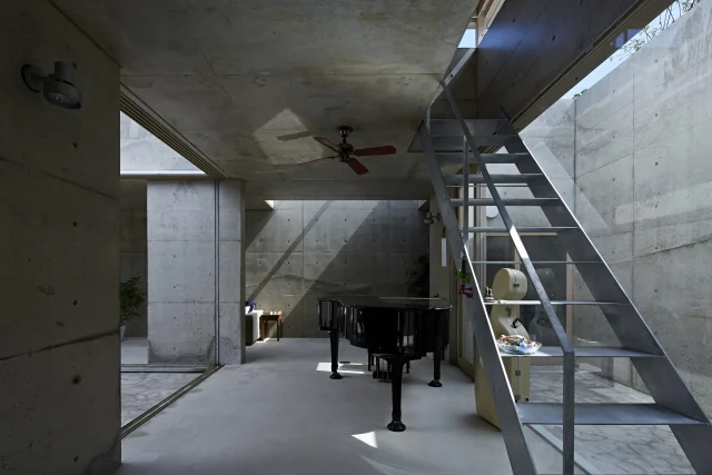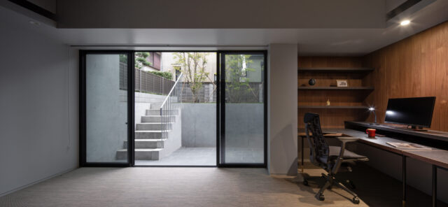 恵まれた自然環境を生かし、明るく開放的に暮らしたいとお考えだったお施主さま。建築家の上原さんは要望に応えるため、なんと建物を半分地中に埋めてしまった。完成した生活空間は地下。しかし、自然光で明るく、風が抜け、空も見えて気持ちがいい。さらに、家ができたことで自然の魅力も増したという。東京都文京区 / S邸