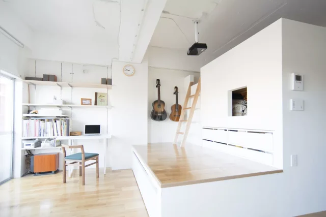都心にほど近い街で暮らす、kurachiffon 瀧内未来一級建築士事務所代表の瀧内未来さん。築40年ほどのマンションをリノベーションしたという物件は、自宅兼仕事場として、日々の生活を送りつつも、使い勝手や生活導線を考えながら設計をしていったそうです。以前は、日当たりや風通しがよいとはいえない部屋に住んでいたという瀧内さん。今回は、切望していた日当たり、そして風通しのよい新たな住居を造り上げていった過程や、リノベーションの魅力についてお話しを伺いました。
