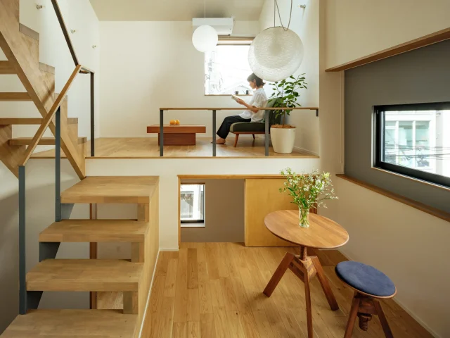 札幌市内にあるこちらの建物は、アートディレクターの施主さまのアトリエ兼住居。自分でアレンジするのが楽しい「倉庫のような空間」を実現した仕事場や、ホッとくつろげる居心地抜群の住居について、設計を担当した高木由美子さんに話を聞いた。東京都調布市 / 双峰のいえ