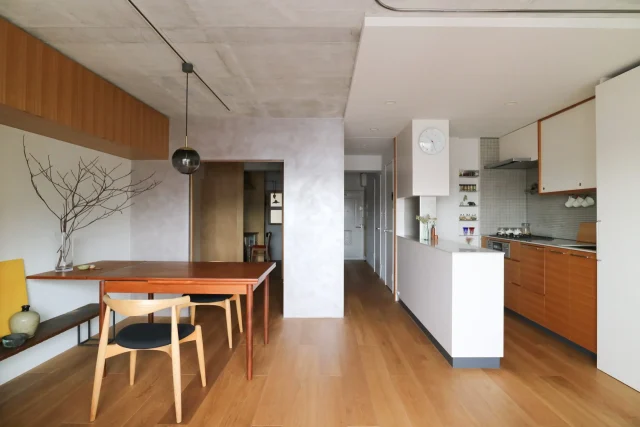 建築家の田中晴代さんの自邸は、結婚後に購入しリノベーションしたマンションの一室だ。この家で暮らして8年、家族構成や働き方が変化していく中でこうしておけばよかったと感じる点がひとつもないという。このおおらかさはどのように生まれたのだろうか。東京都墨田区 / DOMA+(土間と)