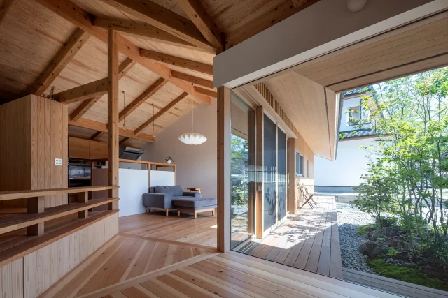 1枚屋根の下でどこまでも伸びる視線。 大らかに家族が繋がる2世帯住宅