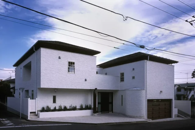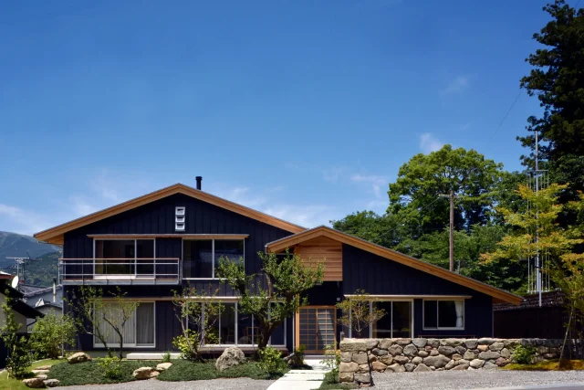 遠くに見える山並みとも調和した おおらかな大屋根の3世帯住宅