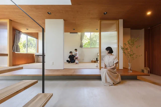 山に近い立地では、眺望はもちろん、木の香りが楽しめる自然素材を使用した住宅に。