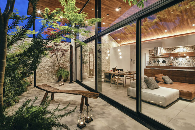 大胆な玄関の吹き抜けや、開放的かつアクセントとなる中庭、全面ガラス張りのリビングなど、建築家ならでは「非日常」空間を実現した住まいをここでは紹介します。