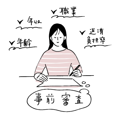 事前審査では、年齢、申込者の年収、職業、返済負担率(返済比率)などがチェックされます。複数の金融機関へ申し込みすることも可能です。