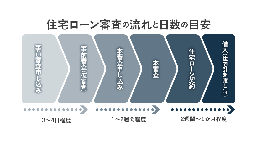 数千万円という高額、かつ数十年という長い期間の借り入れになることが多い住宅ローン。トラブルにならないよう、慎重な審査が必要であり、事前審査を申し込んでから本審査、融資決定となるまでに1か月以上かかるケースもあります。