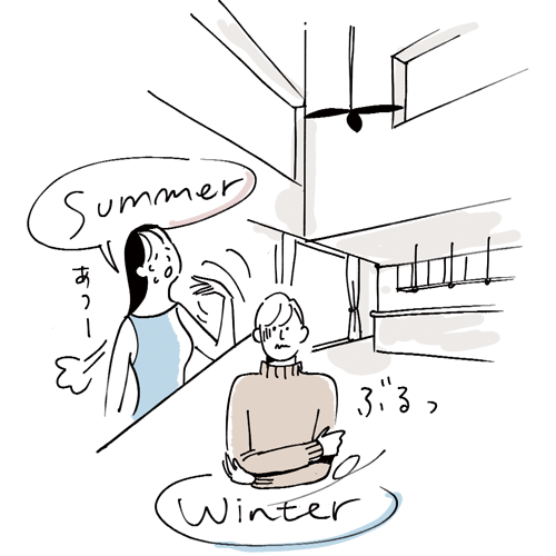 一方で夏場は冷房の効きが悪く、冷たい空気が床にたまってしまうため、冷却効率も低下します。