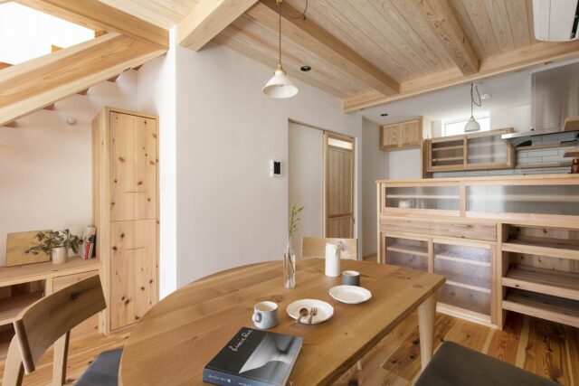 内装や造作家具に藤田さんが選ぶ素材を使い、その他の家具や照明器具なども藤田さんのおすすめを取り入れると、質の良さを感じさせるナチュラルで素敵な空間が完成する。シンプルな食器や雑貨がさりげなく置かれただけで、とても絵になる