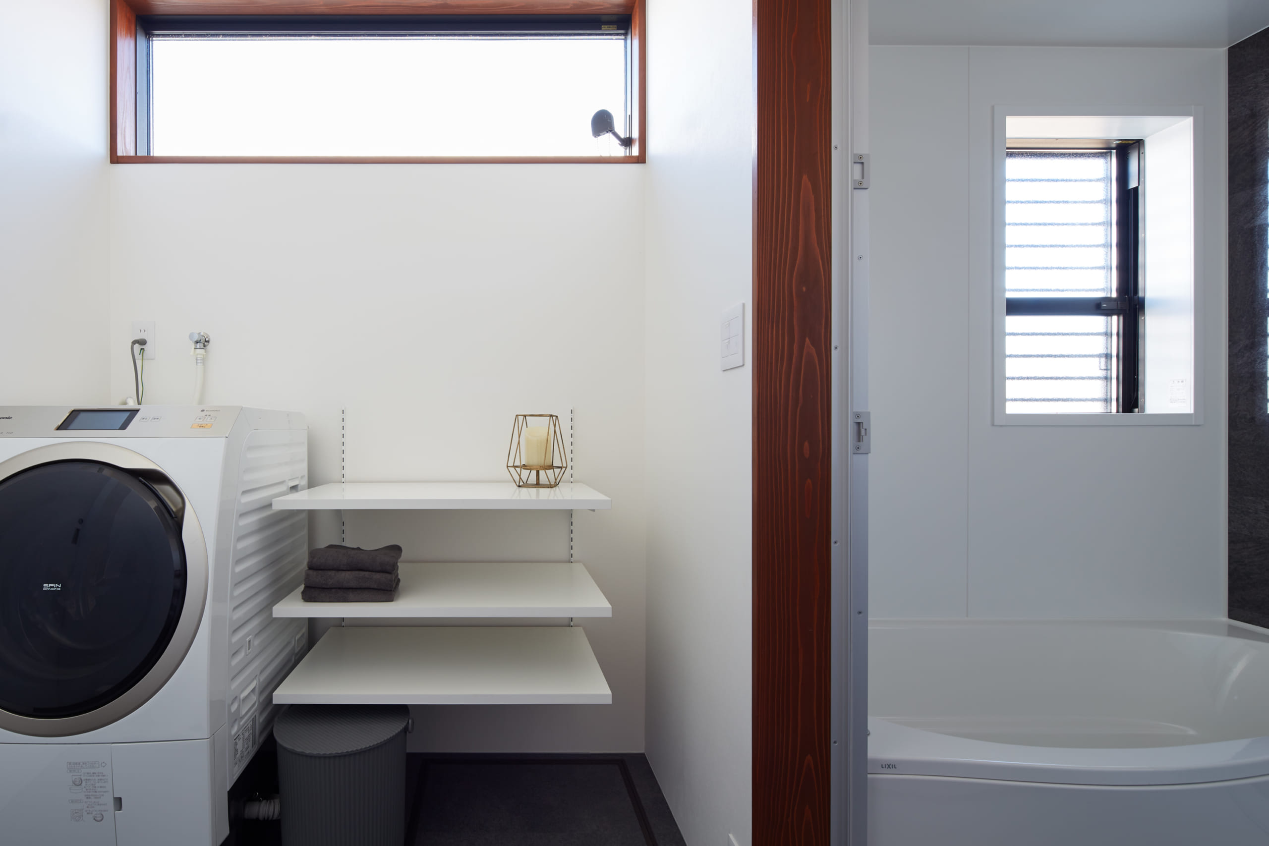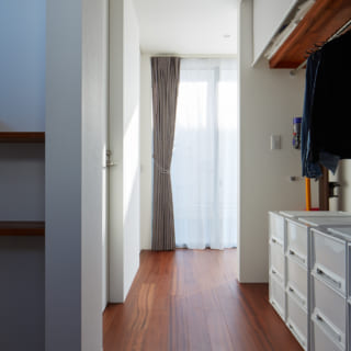 1階の水回りのある廊下には、ファミリークローゼットを計画し、日常の着替えや洗濯などがここで完結。