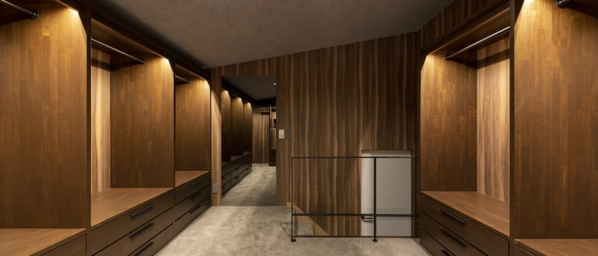 壁、天井、床、照明、見切り、建築的な種々のパラメーターを繋げたり切離したりしながら計画する。木質、磁器質、塗装の質感、それぞれの素材の質感と配置を調整し全体の統制はとりながらも、個々のスペースで異なる様相が表れるような空間計画を試みている