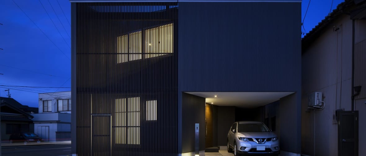 都市計画道路によって削られた土地に建つ三角形のコンパクトな住まいです。2階のプライベートデッキにより、採光とプライバシー確保を両立させています。