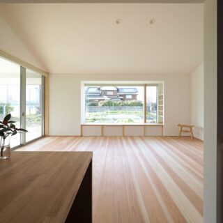 遠くに山並みを望み田畑が点在する住宅地に立つ、ご家族4人の平屋建ての住まいです。