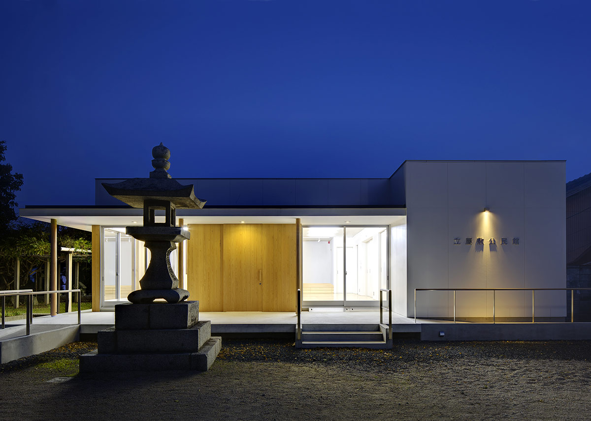 とある神社の境内に建つ、公民館の建替えです。長年、地域住民に愛され続けられている神社の境内に開かれ、より、人々がつながりやすくなる為に、広めのテラスと深い軒下空間を提案しました。コストも含め、何度も地域住民の皆様との対話を重ね、ひとつひとつを積み上げて生まれた建築です。この神社で行われるお祭り事とともに、世代を超えて親しまれ続けて欲しいと願っています。