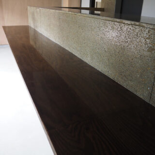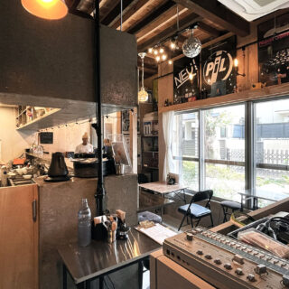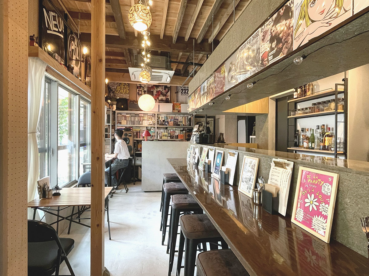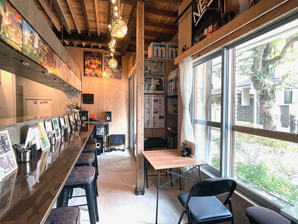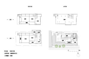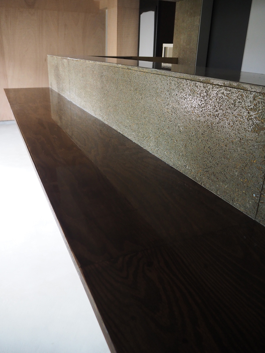 1階飲食店では、床を解体し剥き出しとなった土部分に、基礎の代わりとなっている大谷石に緊結するよう配筋した土間コンクリートを施工し、耐震性を高めると共に、飲食店としての天井高と清潔感を確保した。また、壁は全面を有孔の木製ベニヤ貼りとし、吸音性能に木のあたたかさをプラスした。