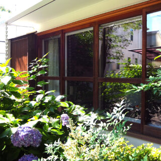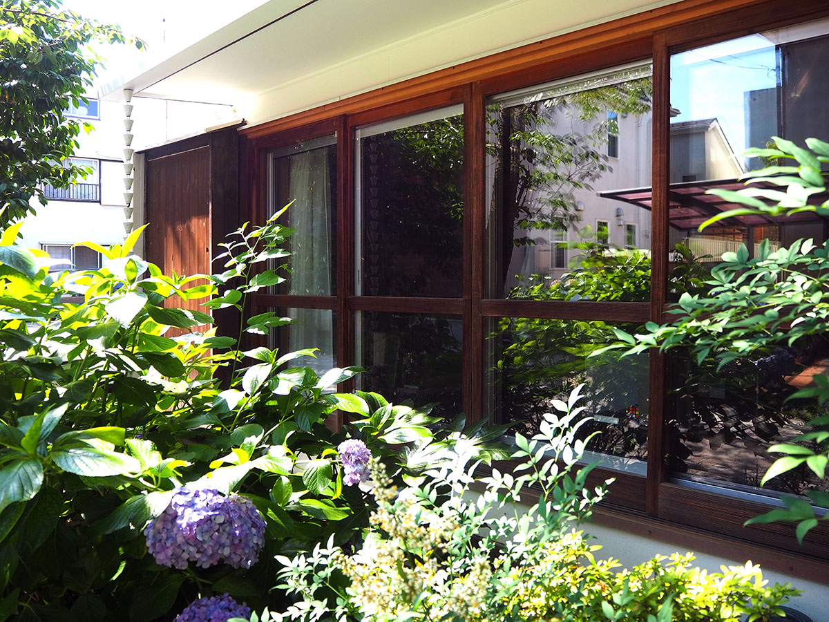 防音、断熱の弱点となる開口部は、外観を印象付ける既存の木製建具はそのままに、内部に防音サッシを設けた。玄関には防音サッシで挟まれた風除室を設け、外観の優しさを持ったまま、防音と断熱を実現した。