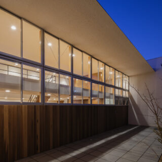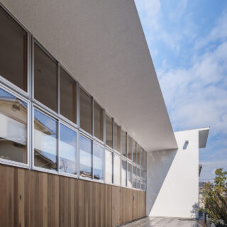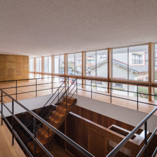 また、この大きな空間構成を各階で分断してしまわないように、床スラブに対してサッシはズレ、階を越境するような構成とした。