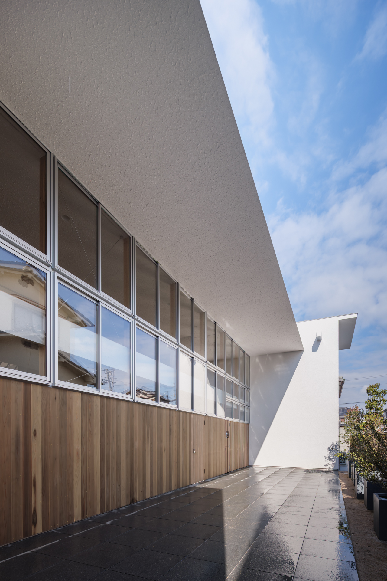 庇の考え方を拡張し、壁と庇が一体となった大きな面で空間を大胆に分けられないかと考えた。