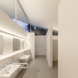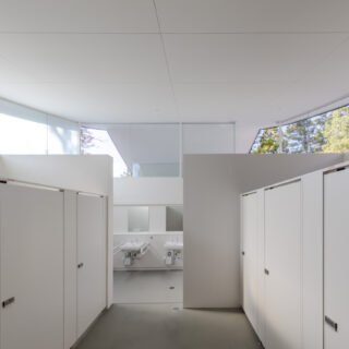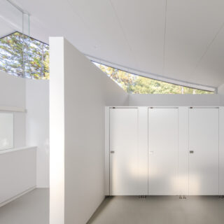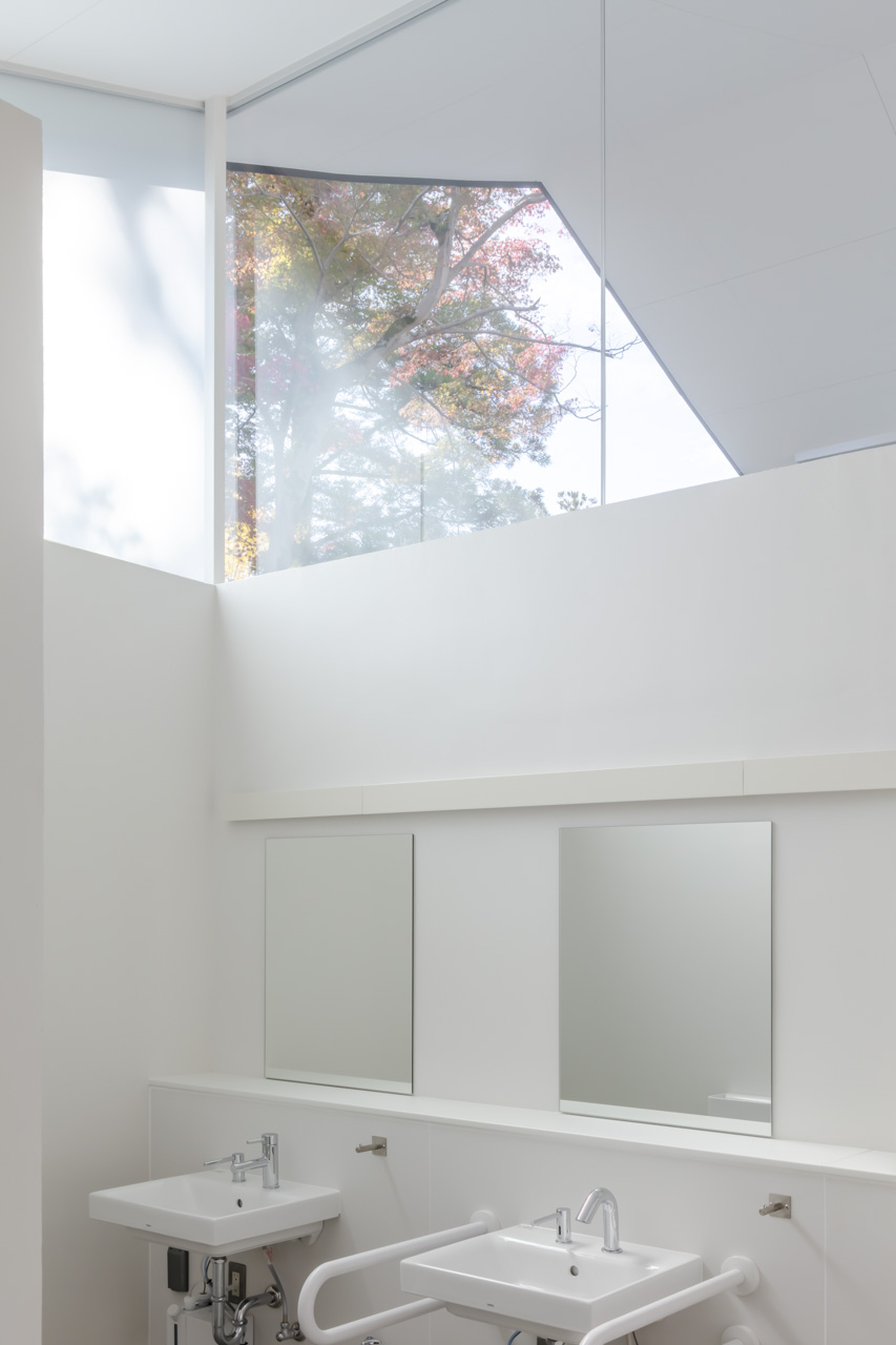 計画地周辺は、かつて既存トイレを隠すために植えられた多くの木々に囲まれていました。この木々に囲まれた既存環境を利用し、緑の風景とその間から差し込む木漏れ日を顕在化させることを考えました。