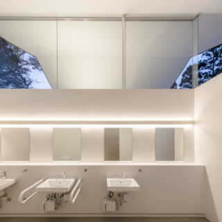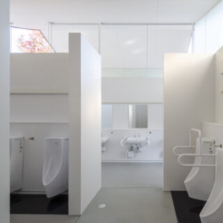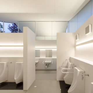 年間約170万人の参拝者が訪れる滋賀県の多賀大社における参拝者用トイレの計画です。既存の参拝者用トイレは器具数が少ないことによる慢性的な混雑、建物と設備の老朽化といった問題を抱えていたため、神社のイメージアップにつながるトイレへの改築を目指して計画は始まりました。