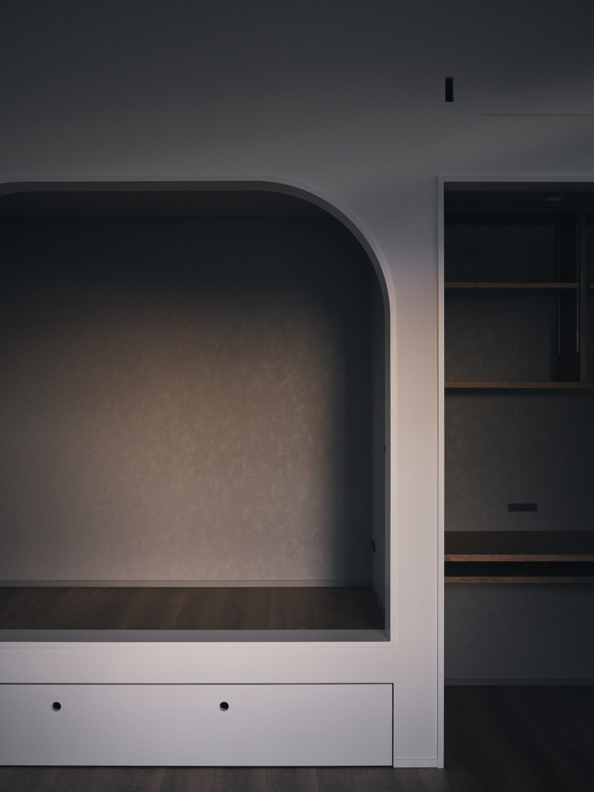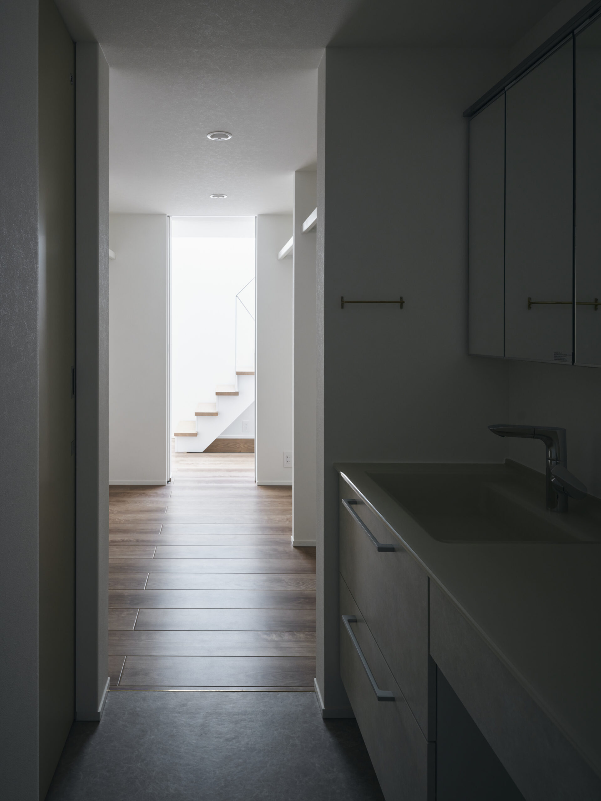 見慣れた住宅の断片が、寸法のわずかな変調だけで別の相として立ち上がる。