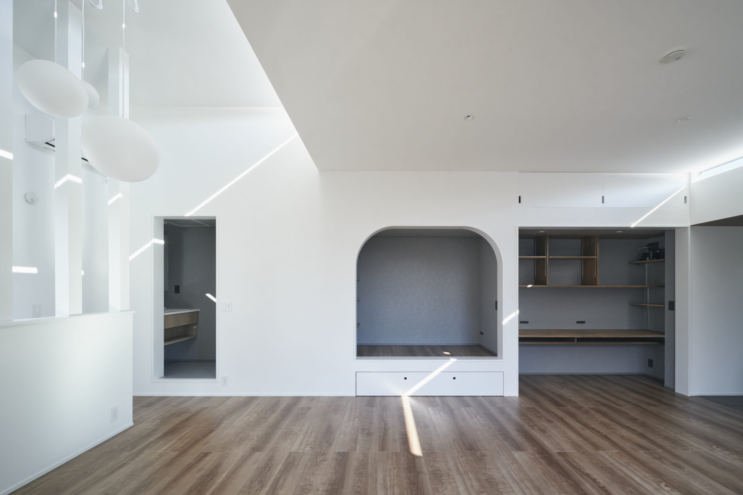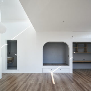 この家には、どこかで見たことのある“ごく一般的な家のイメージ”が、別の姿へと静かに変容して現れる瞬間がある。