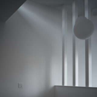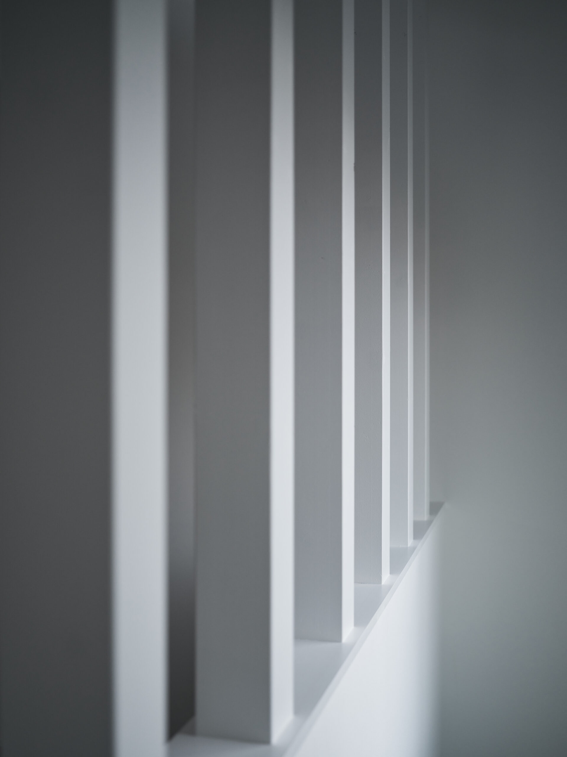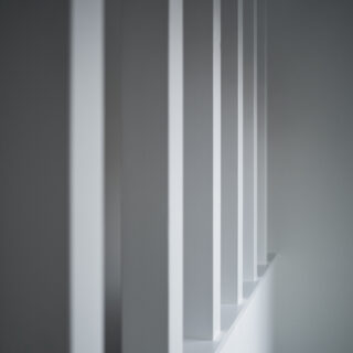 かつての住宅のありふれた要素のようでありながら、柱は異様に背を伸ばされ、既視感をわずかに裏返す。