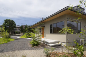 オープンな雰囲気を演出するため、前面の塀の一部を取り払いアトリエを訪れる人が、直接屋内の様子を伺えるようにした。