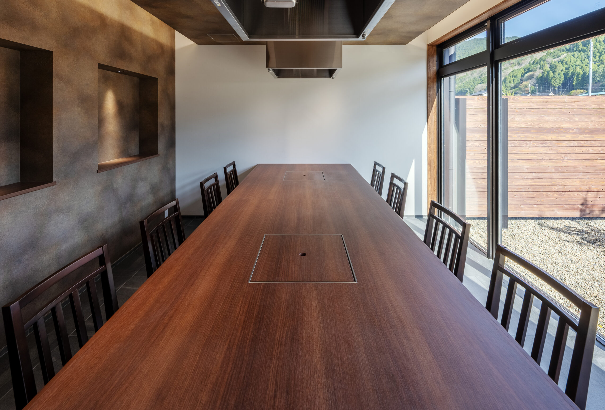 宿泊者用レストラン個室は、高級感ある仕上げを取り入れた