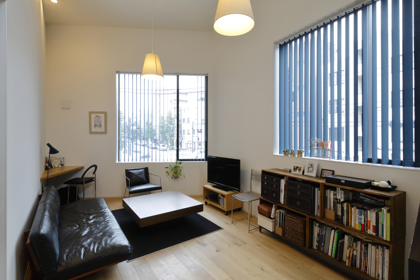 施主の堀口さんご家族は、もともとこの地で長く商売を営む家だったが、道路整備のための区画整理対象となり、移転か建て直しかを迫られ、慣れ親しんだこの地で、新たに賃貸併用の住宅を建てる道を選んだのだという。その際、ご両親からいただいたリクエストの1つが、「街との調和」だった。